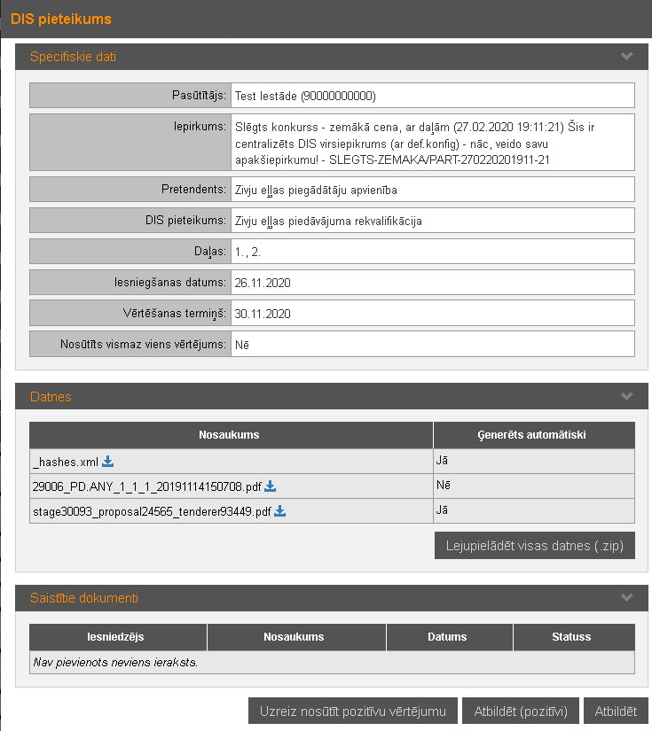 (pozitīvi), tiek izveidots vērtējuma dokuments, kurā blokā “DIS