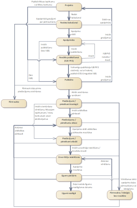 Attēls 43. Iepirkuma daļas statusa pāreju diagramma