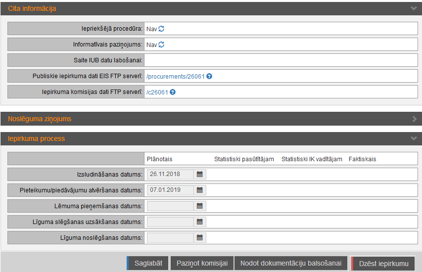 Attēls 31. Cita informācija, iepirkuma process