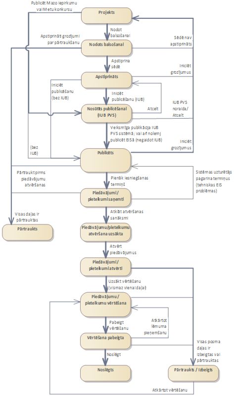 Iepirkuma posma statusu pārejas – diagramma
