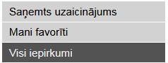 − Izvēlēties noteikta veida iepirkumus, izmantojot iepirkumu atlases bloku ekrāna kreisajā malā, atlasot iepirkumus, kuros pretendentam nosūtīts uzaicinājums, vai atlasot iepirkumus, kuri atzīmēti kā favorīti, vai visus iepirkumus: