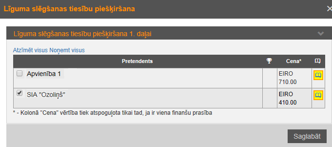 Attēls 154. Piešķirt līguma slēgšanas tiesības