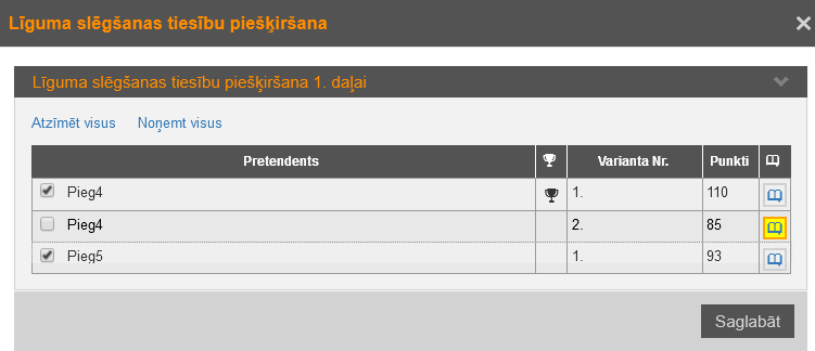 Attēls 161. Līguma slēgšanas tiesību piešķiršana