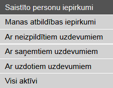 Piezīme! Atlasot Saistīto personu iepirkumus, atlasa piedāvājumus, kur lietotāja organizācija ir kā apakšuzņēmējs, Personu apvienības vai pilnsabiedrības dalībnieks vai Persona, uz kuras iespējām pretendents balstās.