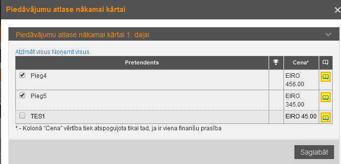 Attēls 152. Piedāvājumu atlase nākamai kārtai