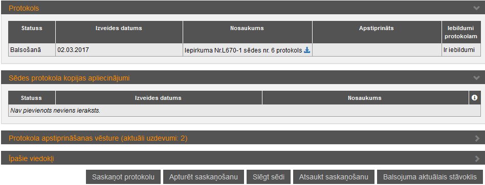 Protokols pieejams sēdes formā blokā „Protokols”. Protokola datni var atvērt un lejupielādēt: