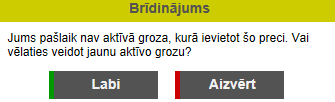 ievietošanas aktīvajā Grozā, sistēmas lietotājam tiek attēlots informatīvs