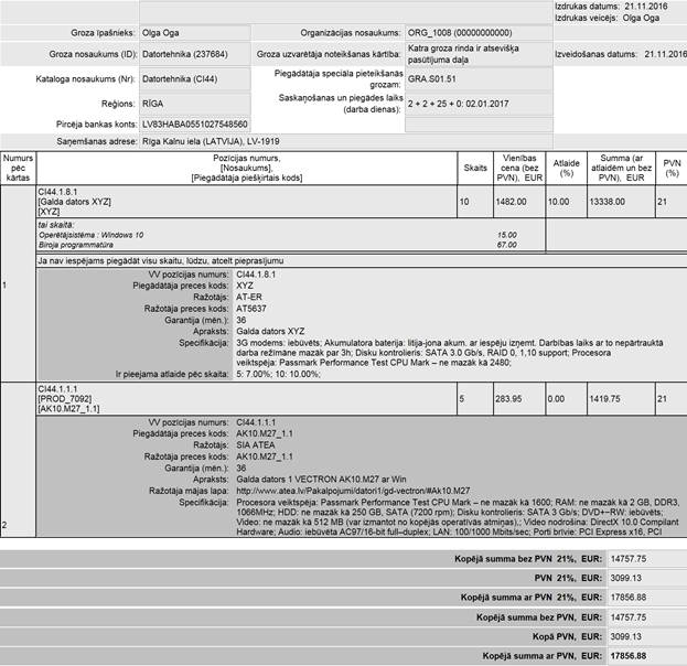 •Piegādātāja preces kods – tiek attēlots precei atbilstošais Piegādātāja piešķirtais kods;