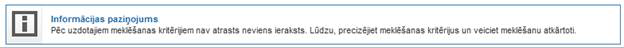 Ja pēc norādītajiem atlases kritērijiem netika atrasts neviens aktīvs Grozs, tad sistēma attēlo paziņojumu:
