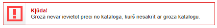 •ja sistēmas lietotājam ir aktīvais Grozs un šim aktīvam Grozam vēlas pievienot preci, kura nesakrīt ar aktīvā groza katalogu, tad sistēma nepievieno šo preci grozam un attēlo kļūdas paziņojumu: