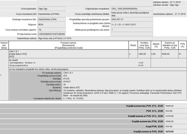 MK noteikumos paredzētā groza informācijas izdrukāšana ir pieejama autorizētiem sistēmas lietotājiem, ar lomu – Iepircējs.