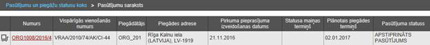 •Statusa maiņas termiņš – tiek attēlots pasūtījuma nākamā statusa maiņas termiņš.
